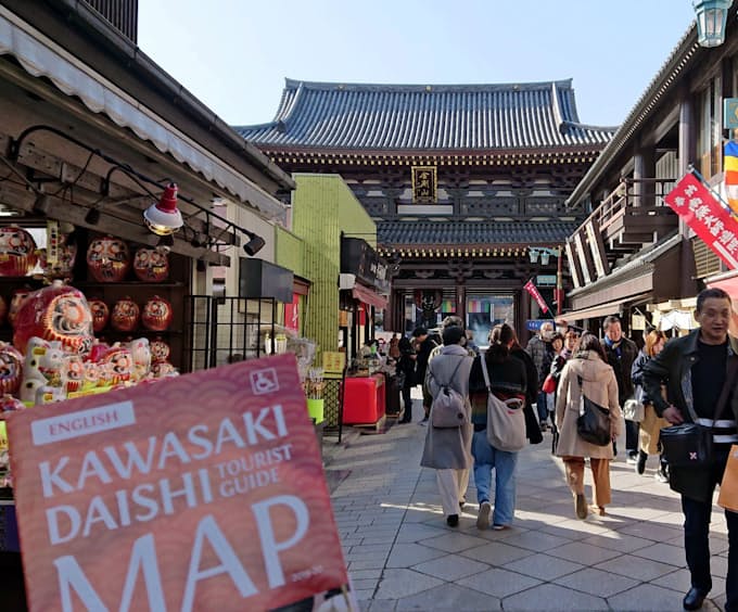 英語マップで参道へご案内 川崎大師 川崎市 日本経済新聞