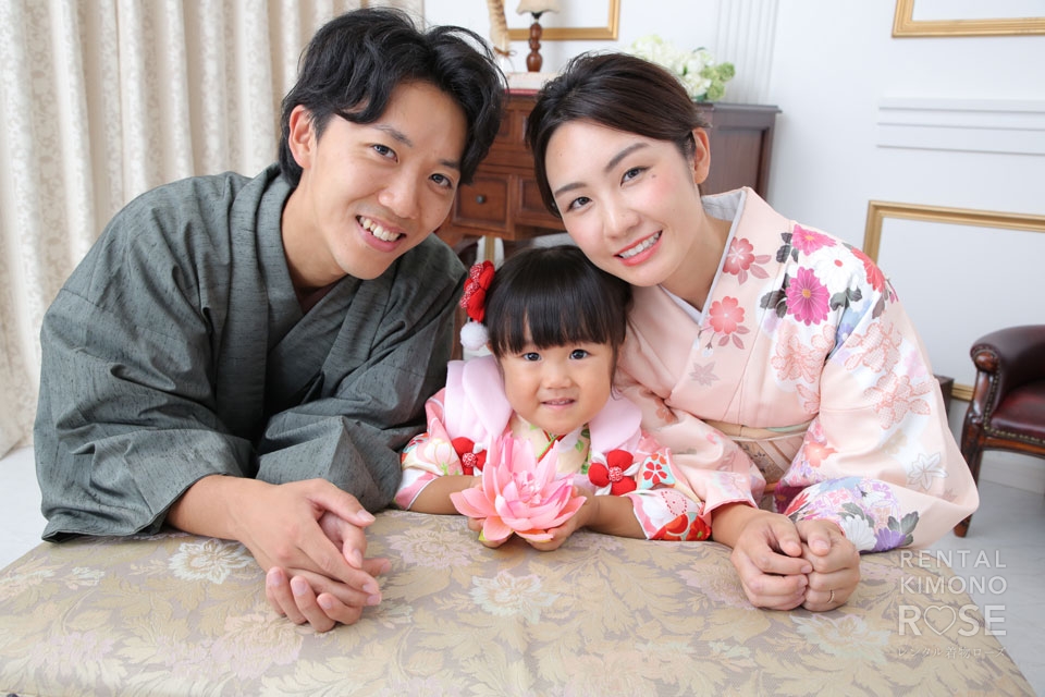 家族一緒に七五三スタジオ撮影 ギャラリー 京都のレンタル着物ローズ ロケ撮影特設サイト