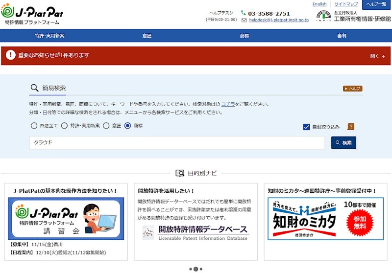 登録商標や出願中の商標の検索 確認 調査に無料で使える J Plat Pat の使い方 商標登録ファーム J Star国際特許商標事務所