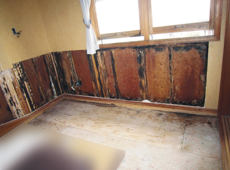 浴室入り口の床にカビ発生 床板のカビ除去およびフローリング張替え リフォームのことなら家仲間コム