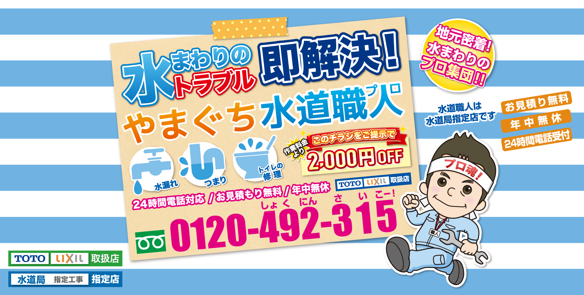 山口 水道修理つまり 水漏れ修理 やまぐち水道職人