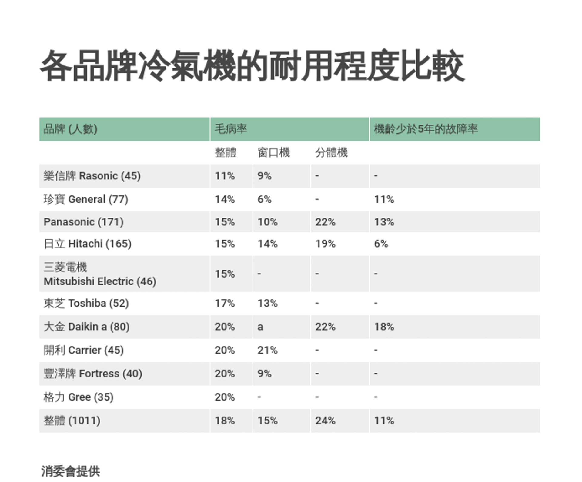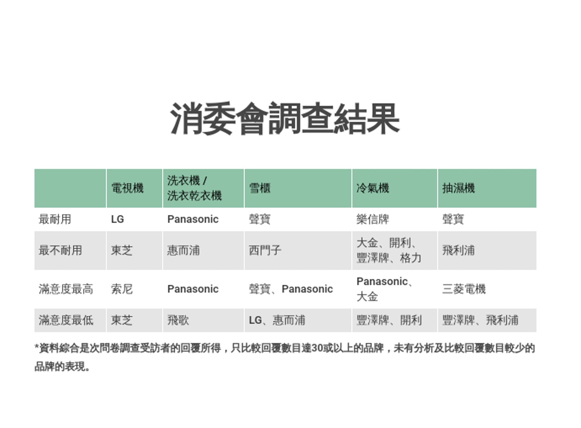 消委會 Panasonic成電器王者 聲寶雪櫃 抽濕機最耐用 香港01 社會新聞