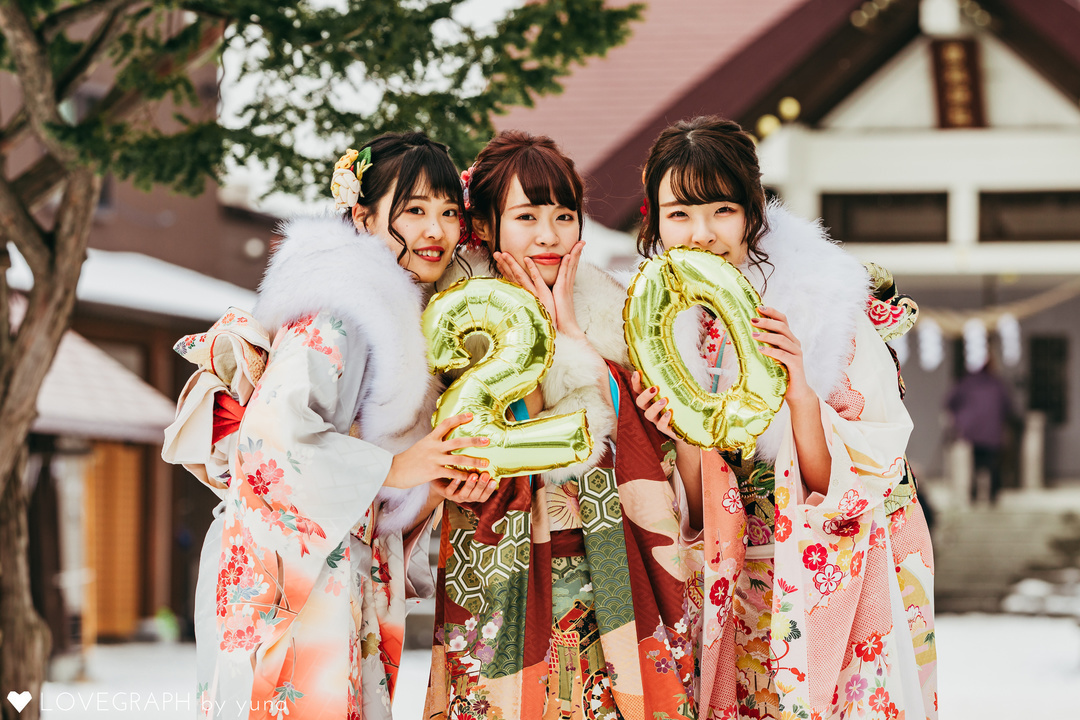 成人式の前撮りを友達と一緒に 盛れる成人写真はaimmeにおまかせください Aimme東京原宿