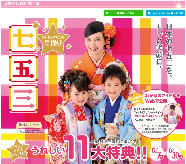 15年七五三撮影キャンペーン スタジオアリス スタジオアリス スタジオマリオをお得に利用