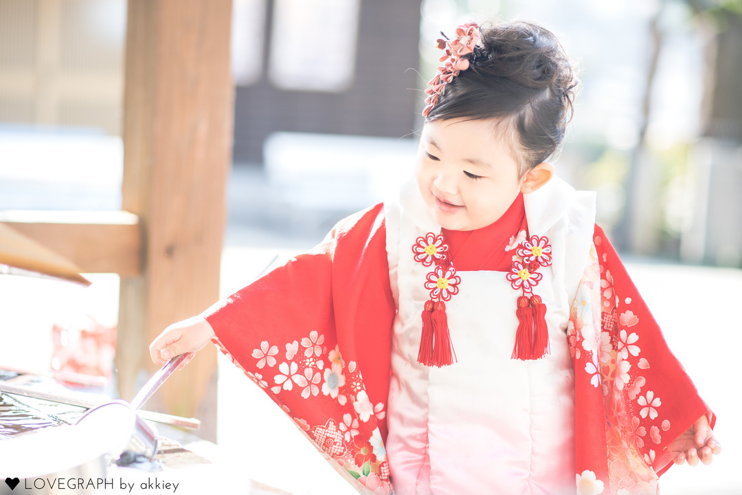 和服で七五三 お宮参り 着付けをされたお客様の写真 Quly Hair