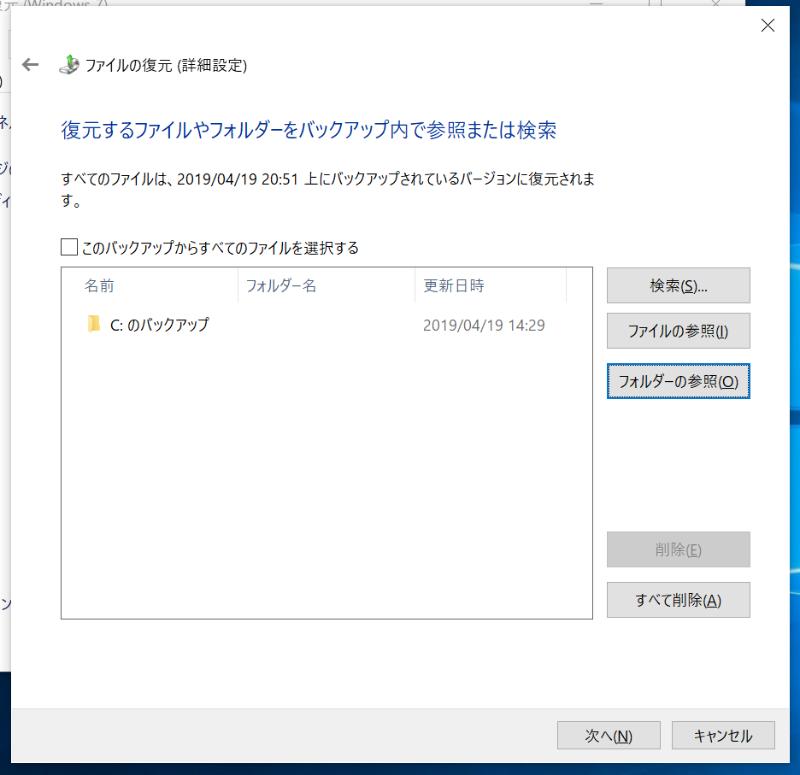 Windows10の バックアップと復元 機能を使ってバックアップする方法 データ復旧大図鑑 自分で解決 ファイル復元