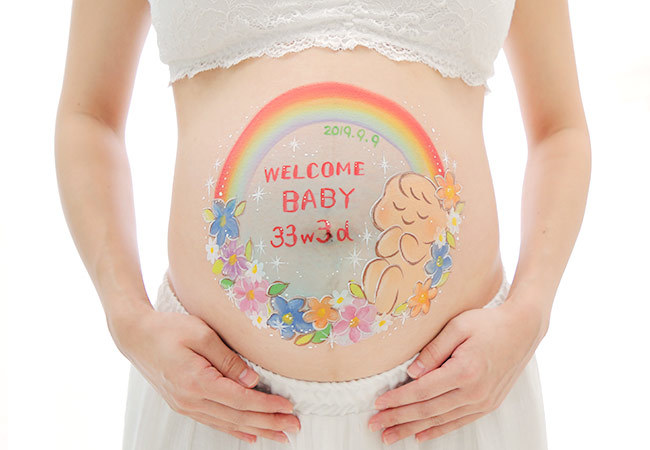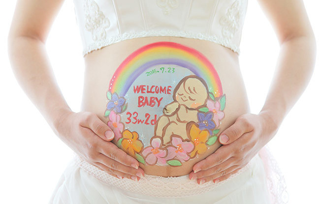 自宅へ訪問ベリーペイントした後に撮影 妊婦さんに贈り物 お腹にペイントするベリーペイント