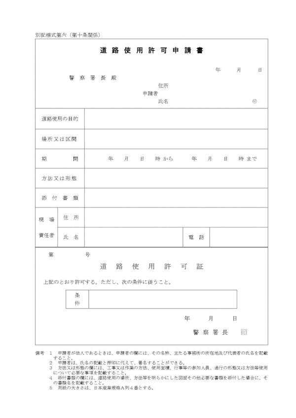 道路使用許可申請書 道路使用許可証