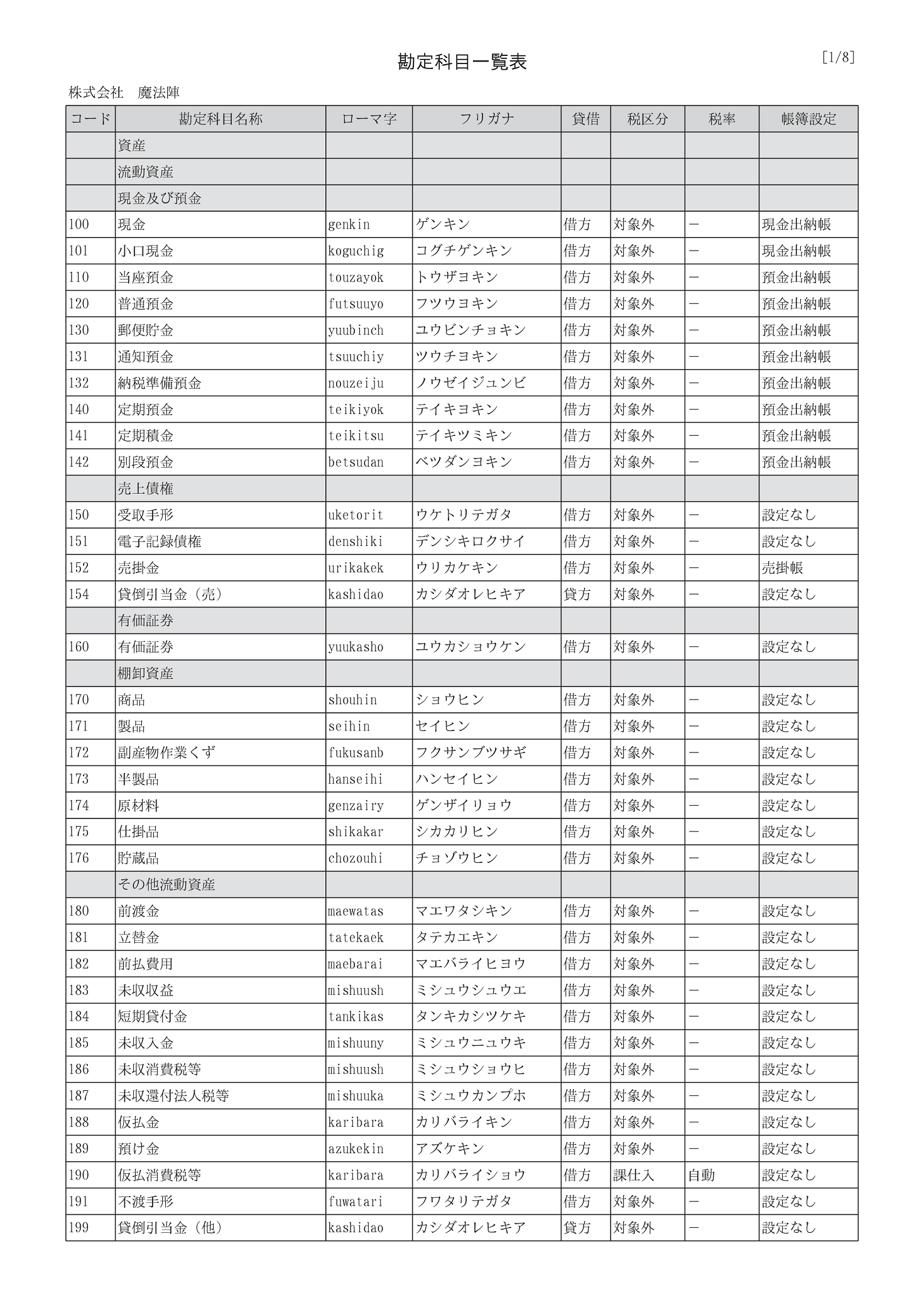 勘定科目一覧表 魔法陣会計クラウド