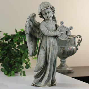 Roman 19 Gray Joseph S Studio Angel Playing A Harp Religious Outdoor Garden Statue