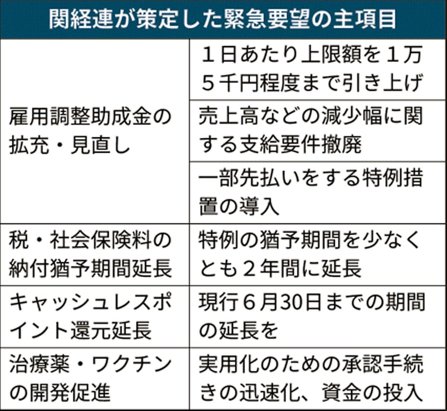 雇用調整助成金の大幅拡充を 関経連 政府に要望 日本経済新聞
