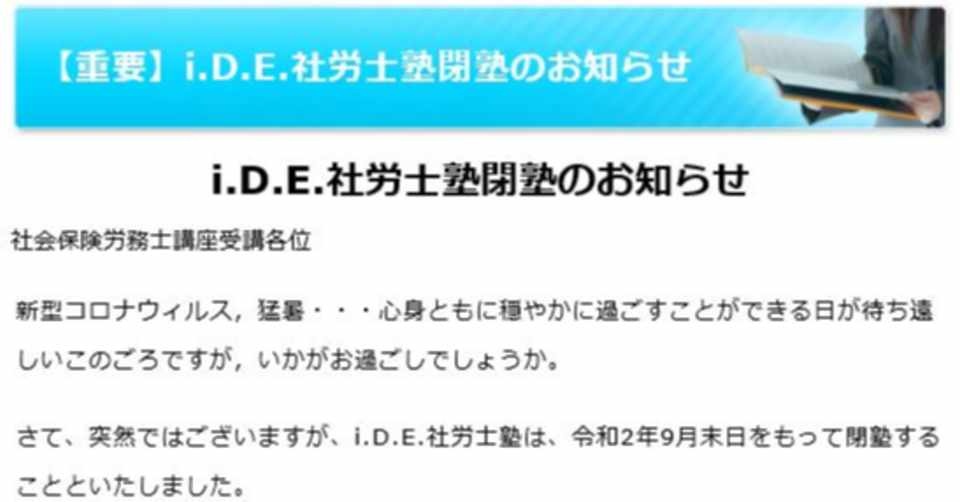 I D E社労士塾 閉塾の悲報 れん 社労士受験生応援 Note
