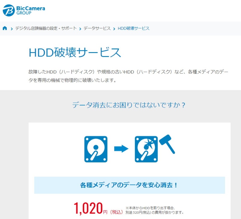 Hdd破壊サービス サービス サポートサイト ビックカメラグループ