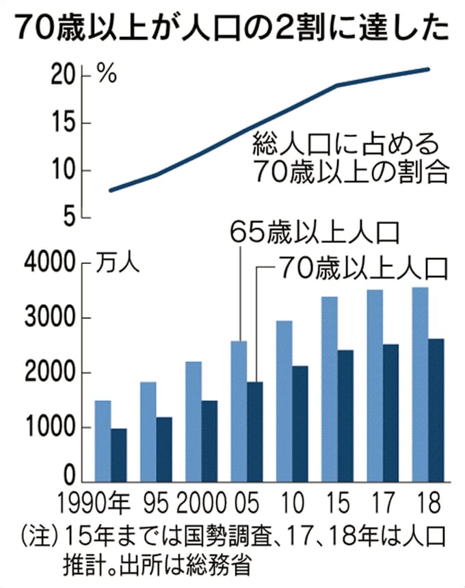 70歳以上 初の2割超え 働く高齢者も最多 日本経済新聞