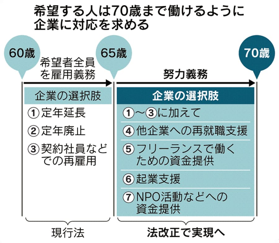 70歳雇用へ企業に努力義務 政府 起業支援など7項目 日本経済新聞